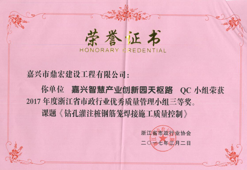 2017年浙江省市政行業(yè)QC獎(jiǎng)