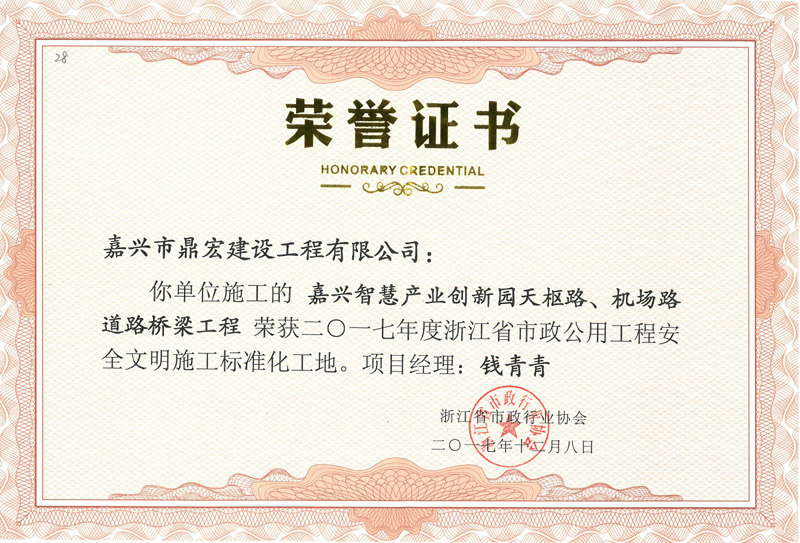 2017年度省標(biāo)榮譽(yù)證書