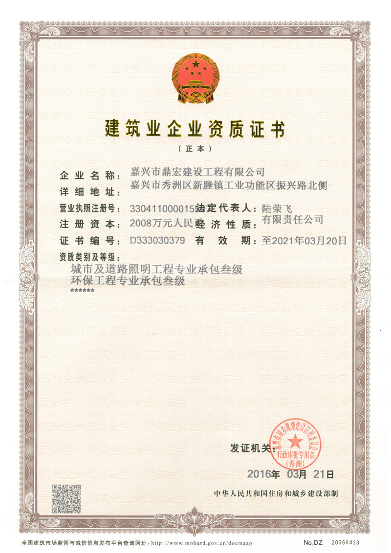 城市道路照明及環(huán)保工程承包叁級